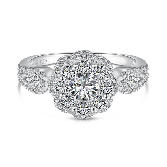 [Clover Jewelry]Delicate Colorful Round Cut Flower Shape Wedding Ring