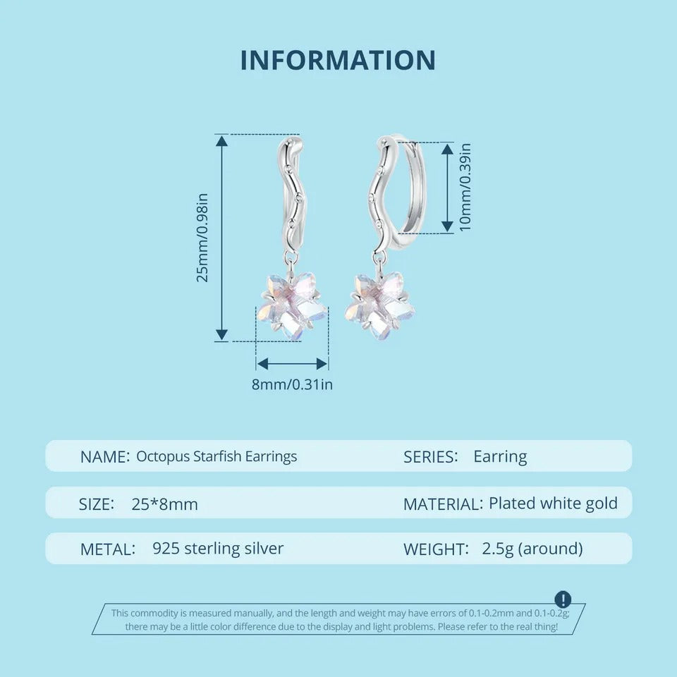 [Description] The earrings embedded with starfish shape glass is playful and whimsical as multiple coils of octopus tentacles being wrapped around. It symbolizes wealth from all directions as well as representing the beautiful meaning of absolute freedom and prosperity.